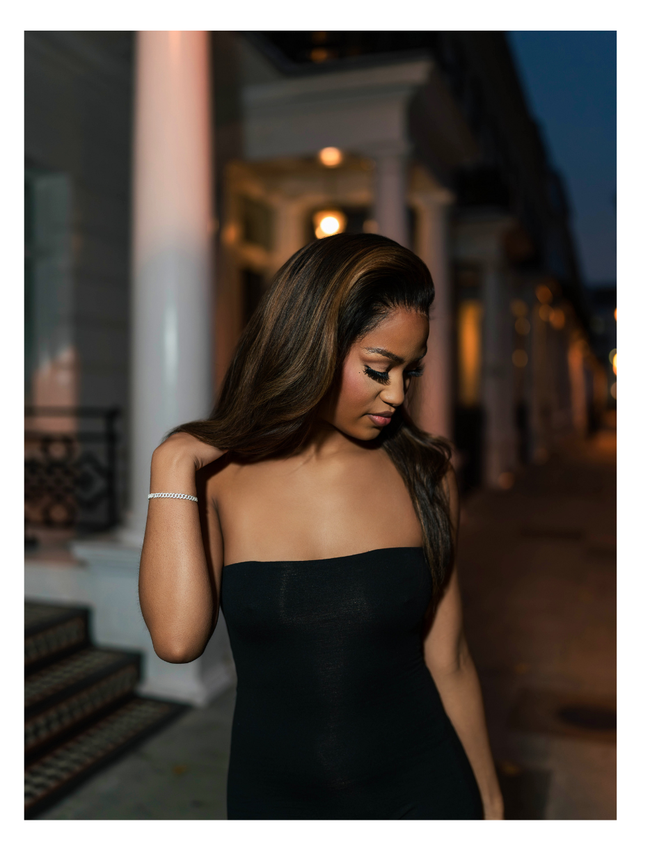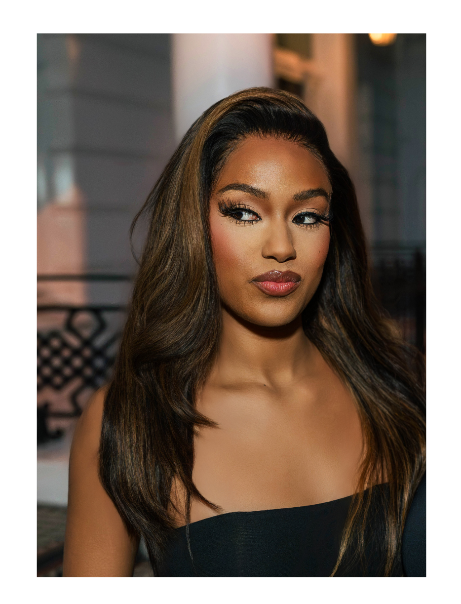 Model wearing 22" pre-made wig, 13x6 , HD lace , 180%, Body Wave, Layered.